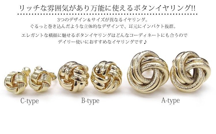 エレガントな横顔に魅せるボタンイヤリングはどんなコーディネートにも合うのでデイリー使いにおすすめなイヤリングです♪Aタイプにはスターダスト加工が施されています。