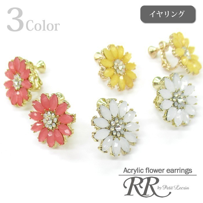 イヤリング アクリル ビジューフラワー イヤリング 大人可愛い 華やか プチプラ おしゃれ パーティー レディース おすすめ