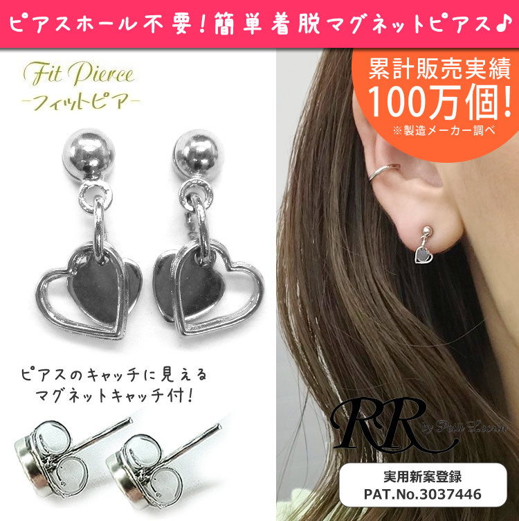 ハート 揺れる マグネットイヤリング シルバー マグネットピアス シンプル メタル ピアス 磁石ピアス レディース 本物そっくりなマグネットピアス 穴なし