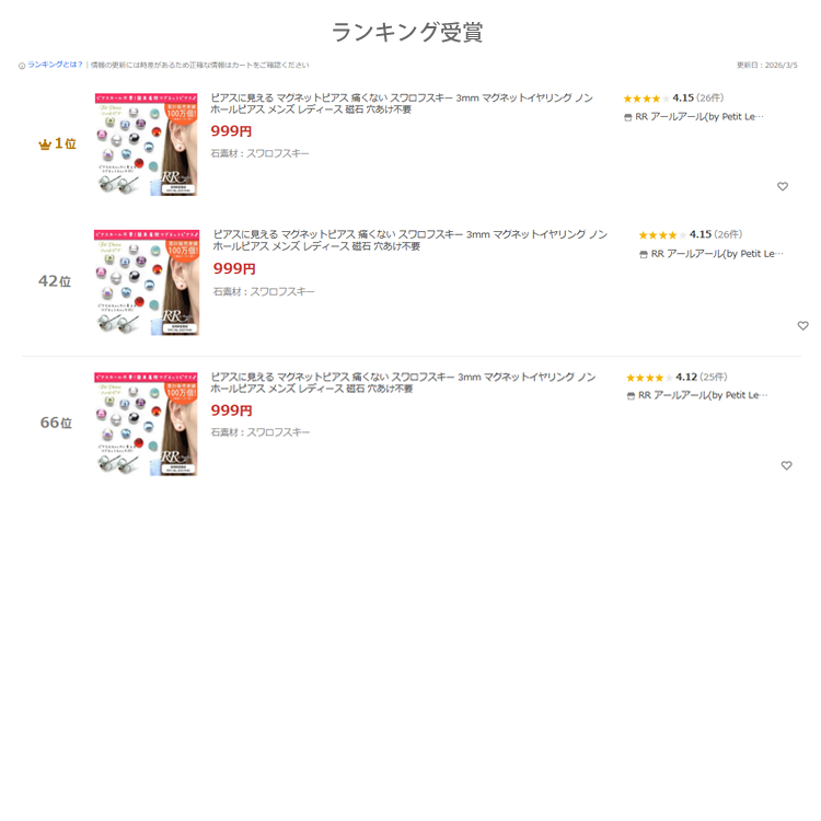 ピアスに見える マグネットピアス 痛くない スワロフスキー 3mm マグネットイヤリング ノンホールピアス メンズ レディース 磁石 穴あけ不要