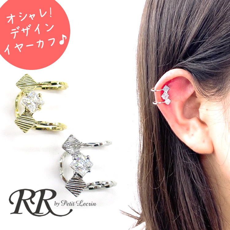 イヤーカフ イヤーカフス メタル スクエア ストーン ゴールド シルバー おしゃれ 片耳 レディース イヤリング