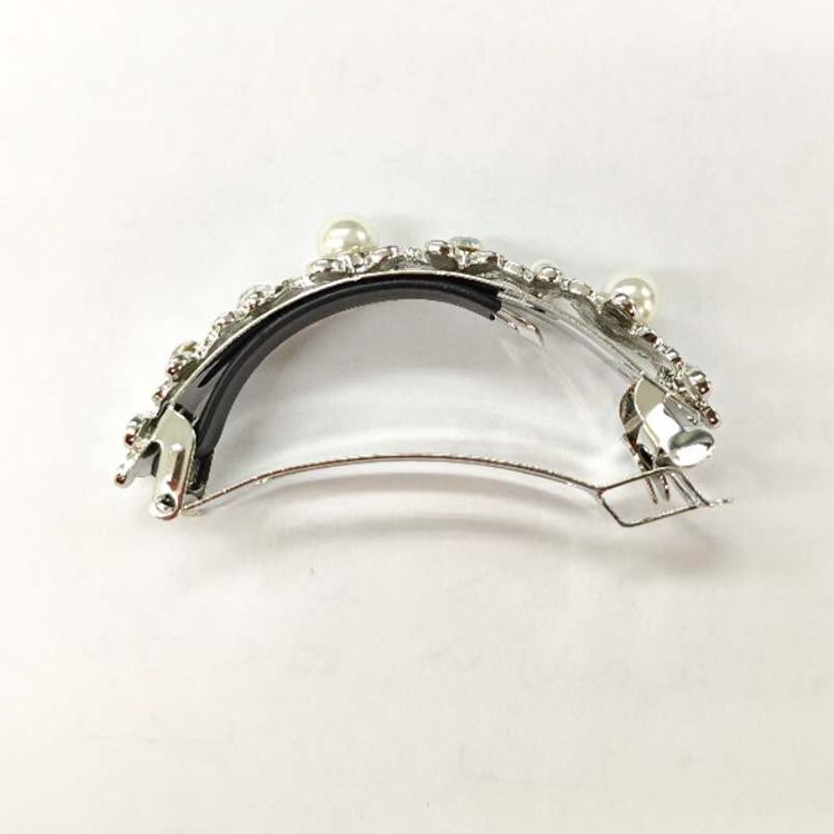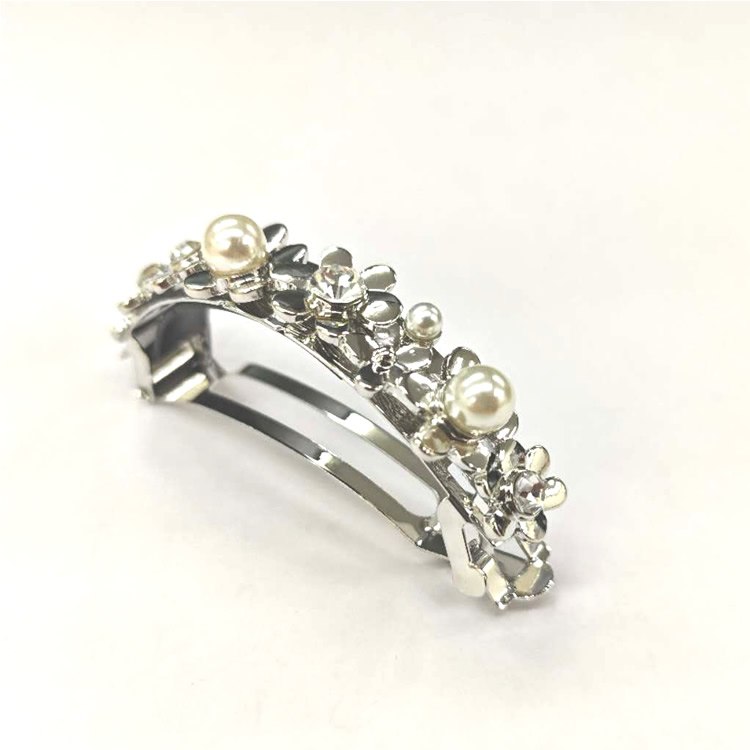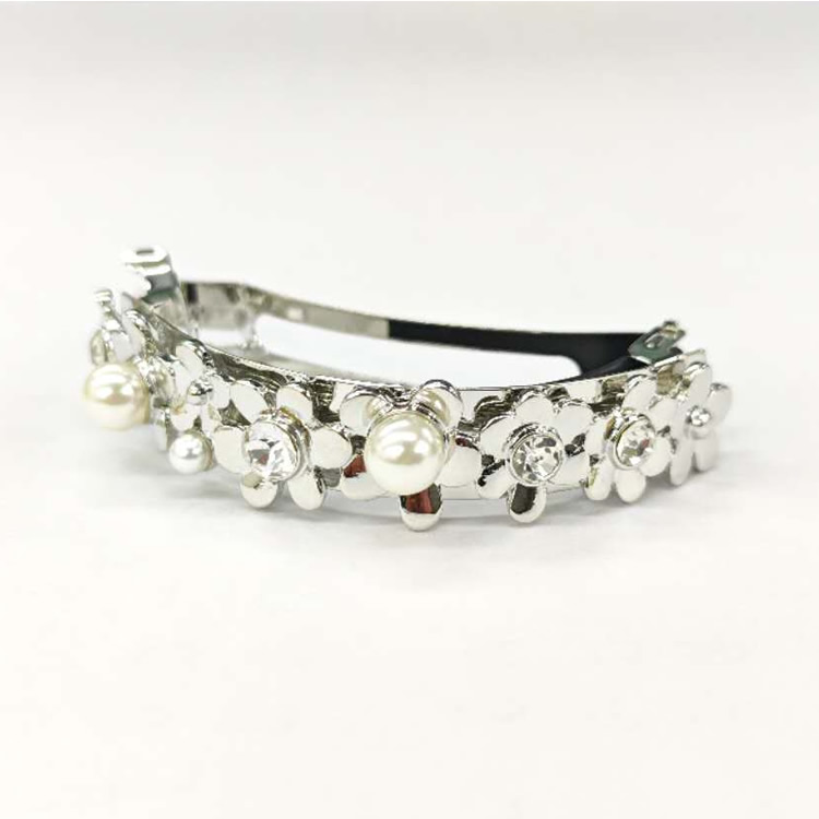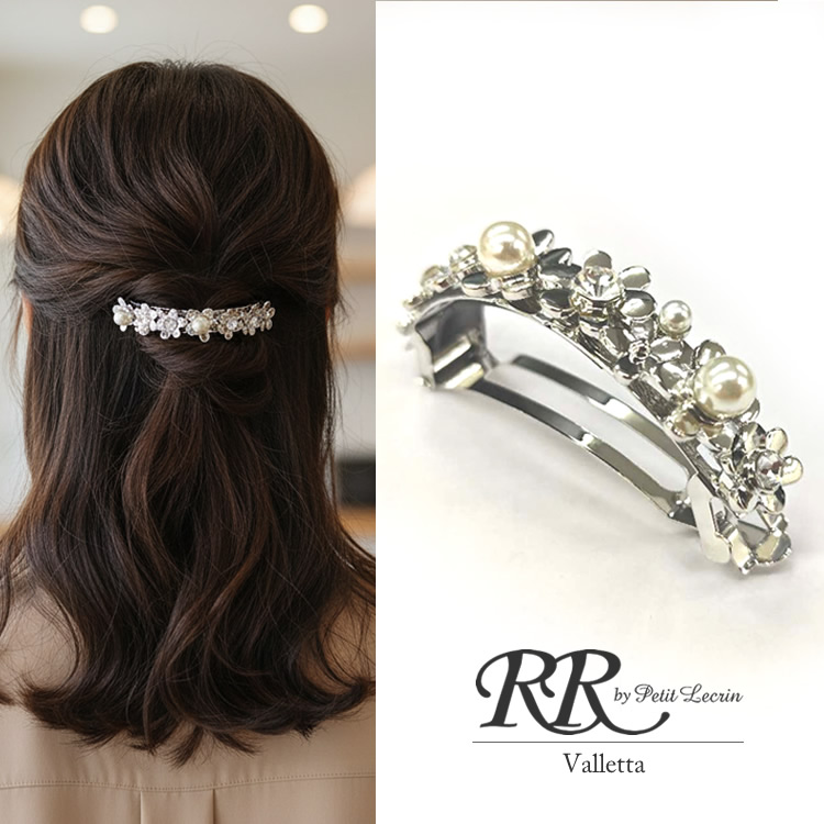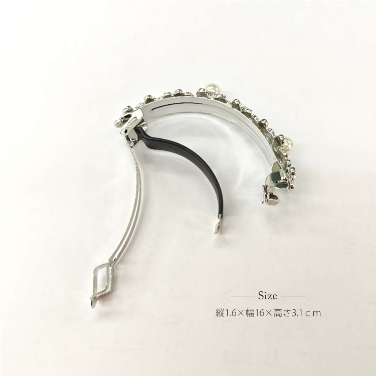 バレッタ ハーフ しっかりとまる 結婚式 花 フラワー パーティー 2次会 パール ヘアアクセ メタル 金属 金具 シルバー