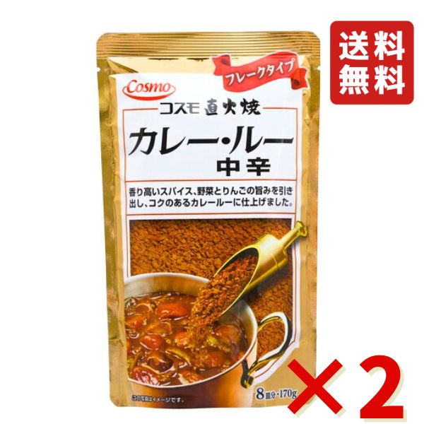 コスモ食品 直火焼 カレールー中辛 170g 2袋 コスモ カレーフレーク カレー 使いやすい 便利 20種類以上のスパイス使用 キーマカレー スパイス 送料無料