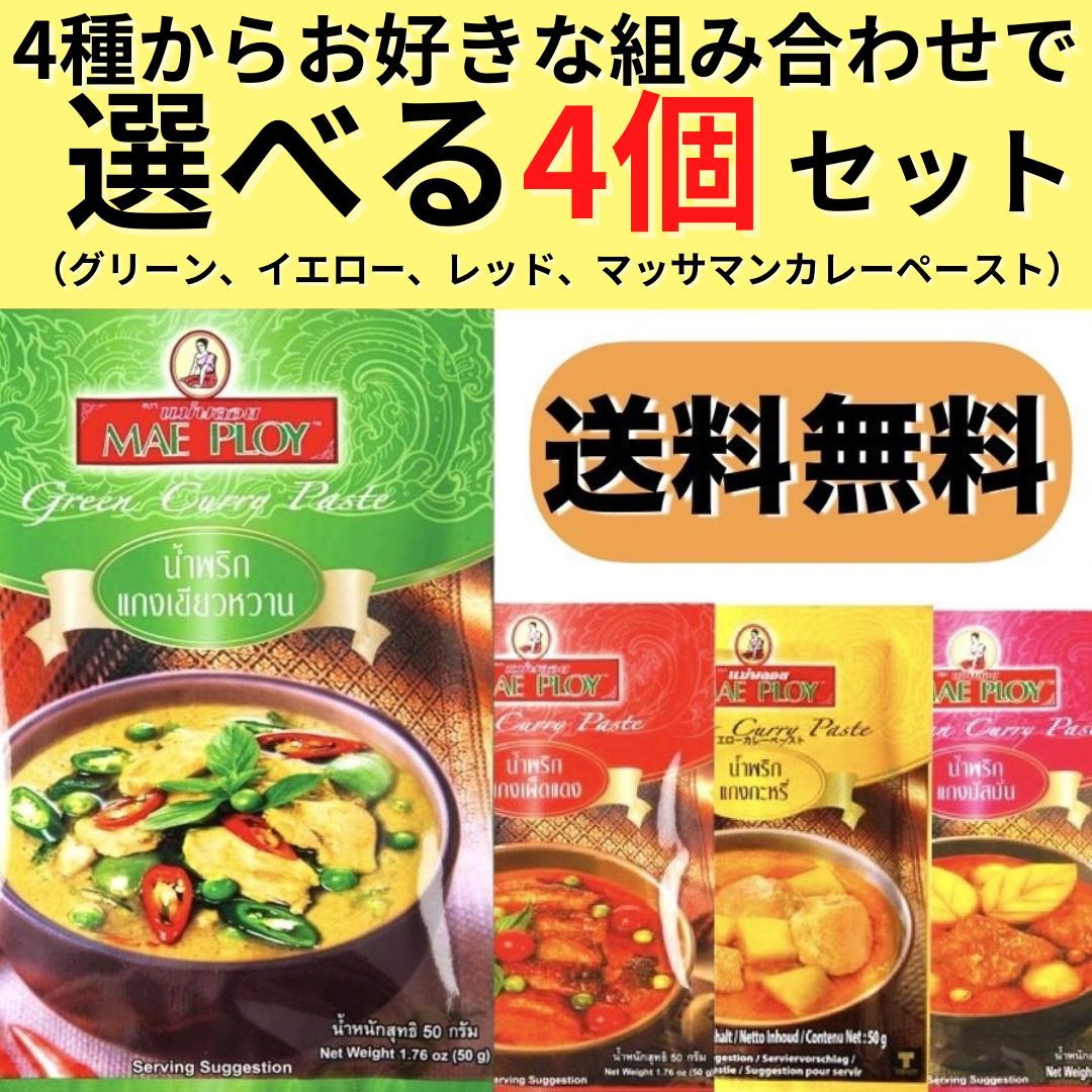 メープロイ タイカレーペースト 50g 4個 グリーン イエロー レッド マッサマン ココナッツミルクパウダー ハラル認証(ハラール) 送料無料