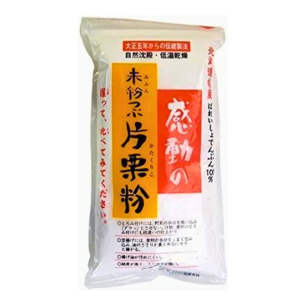 ■大正5年から100年を超える歴史を持つ伝統製法により、摺り下ろした馬鈴薯を自然のまま数時間かけて沈殿したもののみを取り出し約55℃〜約70℃の低温で10数時間かけてゆっくりと乾燥させ、丁寧に製品化していますので粒子の崩壊がなく安定した状態を保っている片栗粉です。