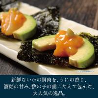 【原材料・成分】いか、塩うに、酒粕、食塩、塩数の子、砂糖、発酵調味料、たん白加水分解物、魚醤/ソルビット、調味料(アミノ酸等)、酒精、増粘多糖類、パプリカ色素、(一部にいか・大豆・りんごを含む) 【栄養成分表示(100gあたり) 熱量117kcal、たんぱく質16.0g、脂質0.1g、炭水化物13.0g、食塩相当量5.2g (この表示値は、目安です。)賞味期限 製造日より60日間(未開封)