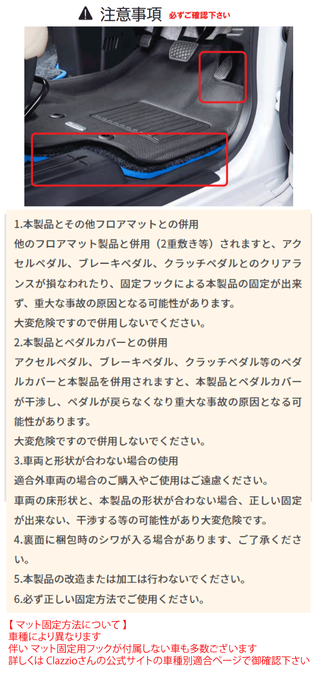 ※参考画像としてご参照下さい 車種により形状やイメージは異なります ≪ 装着参考画像 ≫ ※参考画像としてご参照下さい 車種により形状やイメージは異なります ≪ アルファード ヴェルファイア≫  ※参考画像としてご参照下さい 車種により形状やイメージは異なります ≪ ハイエース ≫  ※参考画像としてご参照下さい 車種により形状やイメージは異なります ≪ ノア ヴォクシー ≫  ※参考画像としてご参照下さい 車種により形状やイメージは異なります ≪ N-BOX ≫  ※参考画像としてご参照下さい 車種により形状やイメージは異なります ≪ タント ≫  ※参考画像としてご参照下さい 車種により形状やイメージは異なります  ※使用上の注意事項を必ずお守りいただきご利用ください ※本製品以外のフロアマット(純正含)との併用はできません ※車種により形状が異なります |