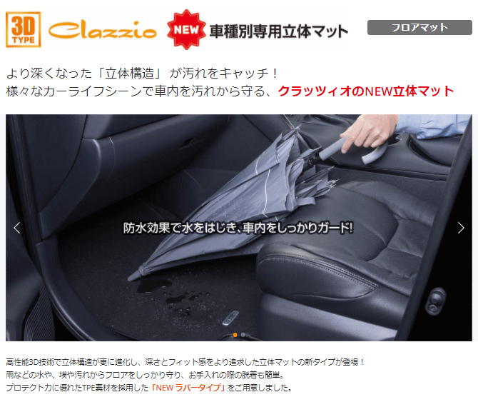 更に、立体構造の利点はもう一つ。フロア面の凹凸に合わせ車種別専用に設計することにより、マットのズレを防ぎ安全性を向上させます