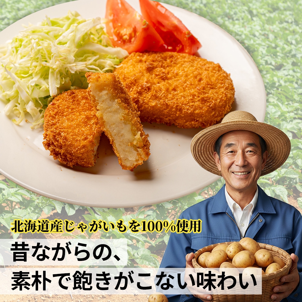 北海道産じゃがいも・パン粉を100%使用。昔ながらの素朴で飽きがこない味わいで老若男女から愛されます!
