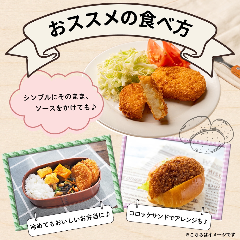 どこか懐かしい、ほっとする味。子どもから大人まで、誰もが笑顔になるやさしいコロッケをぜひご賞味ください。