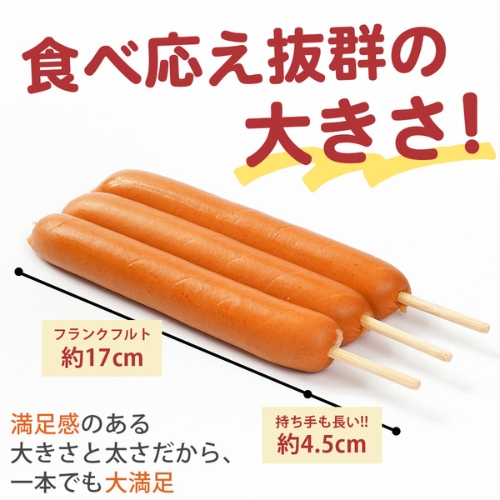 食べ応え抜群の大きさ! 約17cmのフランクフルトと手持ちが4.5cmなので持ちやすく食べやすい! 満足のある大きさと太さだから1本でも大満足