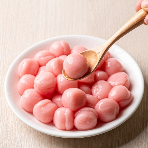 | 原材料名 | 白玉粉、加工でん粉、紅麹色素 |