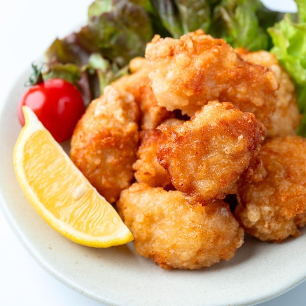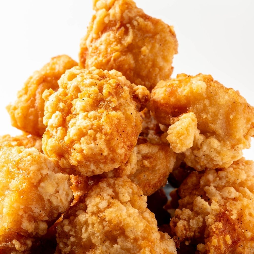 | 原材料名 | 鶏むね肉、でん粉、揚げ油(大豆油)小麦粉、醤油、大豆たんぱく、食塩、にんにく、生姜、塩麹、チキンエキス調味料、白胡椒、卵、脱脂粉乳/加工デンプン、調味料(アミノ酸等)、pH調整剤、ポリリン酸Na、重曹、(一部に卵、乳成分、小麦、大豆、鶏肉を含む) |