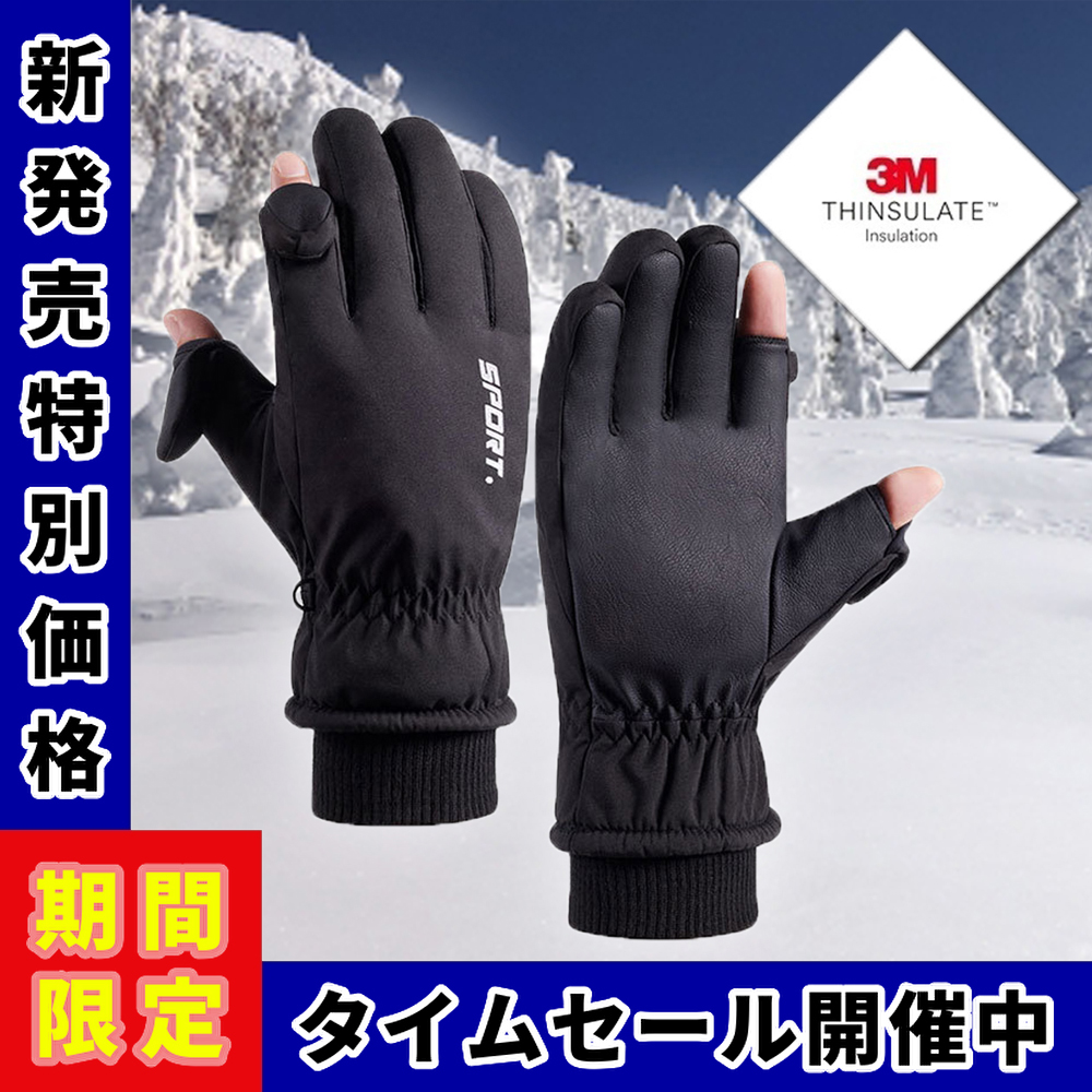 スキーグローブ 指穴 2本指出し 2倍保温3Mシンサレート スキー手袋 スマホ対応 スノボ手袋 スノボグローブ スノーボードグローブ バイクグローブ 防寒 黒 メンズ