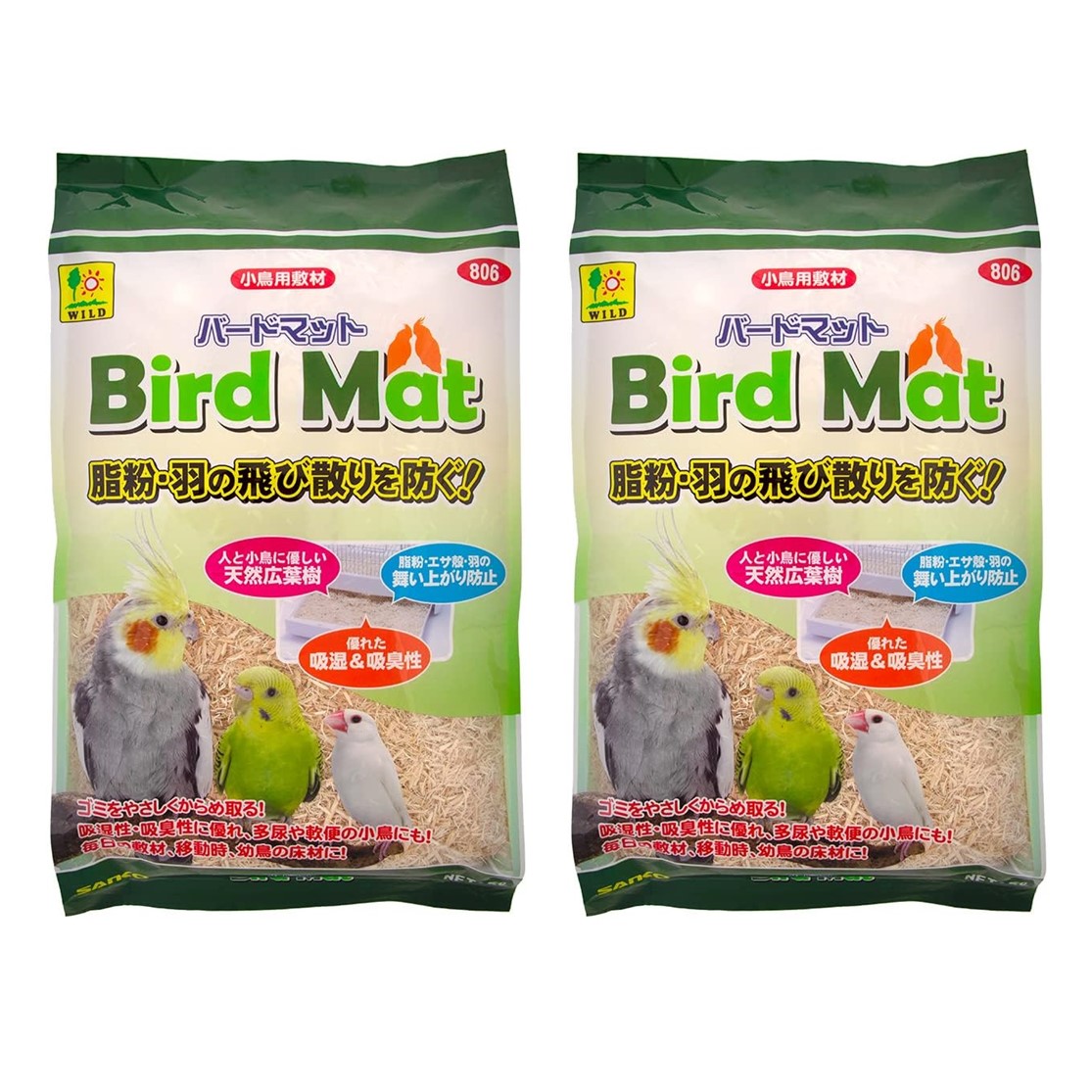 脂粉・羽根の飛び散りを防ぎ吸湿、吸臭にすぐれた小鳥用敷き材