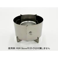 RSR Stove 十字ゴトク用チタン製の風防です。鍋を覆うタイプの風防に比べるとこと強風による対応力は落ちますが、風によりストーブの炎が消えることはまずありません。
