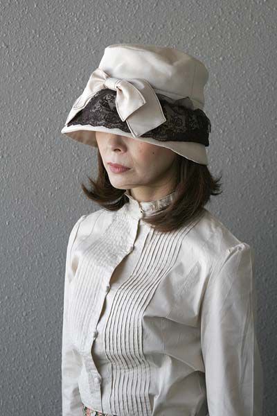 女優帽 素敵なクロッシェ バラのチュールレース シルク