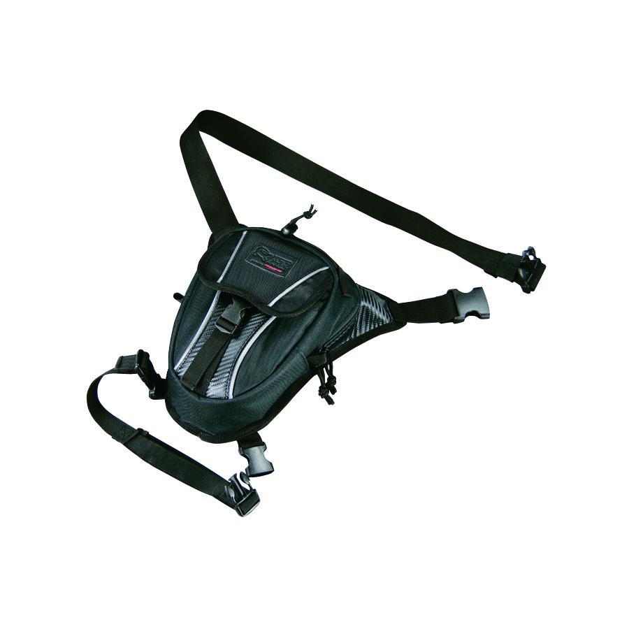 ホルスターのように腰に下げて腿に固定するタイプのバッグです。乗車姿勢の邪魔になりにくく、小物の収納に便利なアイテム。
