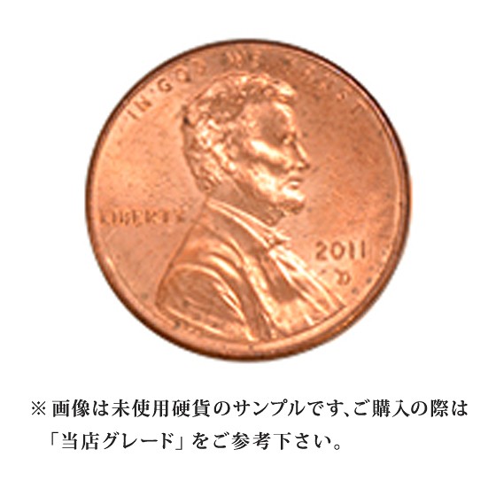 ペニーと呼ばれるアメリカの1セント硬貨です。硬貨の表側はアメリカ合衆国第16代大統領エイブラハム・リンカーンの肖像、裏側は合衆国連邦の盾です。※年代の指定は出来ません。