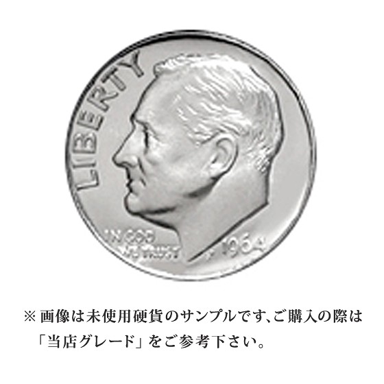 ルーズベルトダイムはそれまでの功績が讃えられたフランクリン・D・ルーズベルト大統領の肖像がデザインされています。このデザインは1946年〜2013年現在まで使用されていますが、流通貨は1964年迄が銀貨、1965年からは白銅貨です。例外として1992以降はコレクター向けの銀90%のプルーフ貨も発行されています。※年代の指定は出来ません。