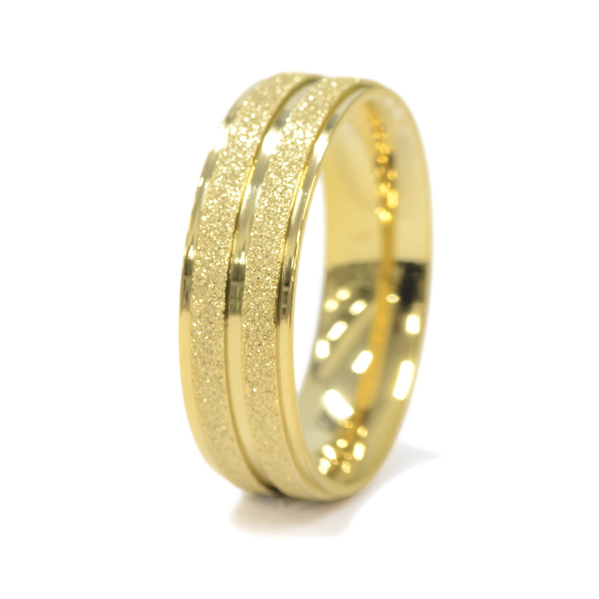 ラメコーティング加工された2本のラインがゴージャスなステンレス製リングです。指に触れる内側の面は、装着感を向上させる為に僅かにカーブ加工を施した内甲丸仕上げとなっております。