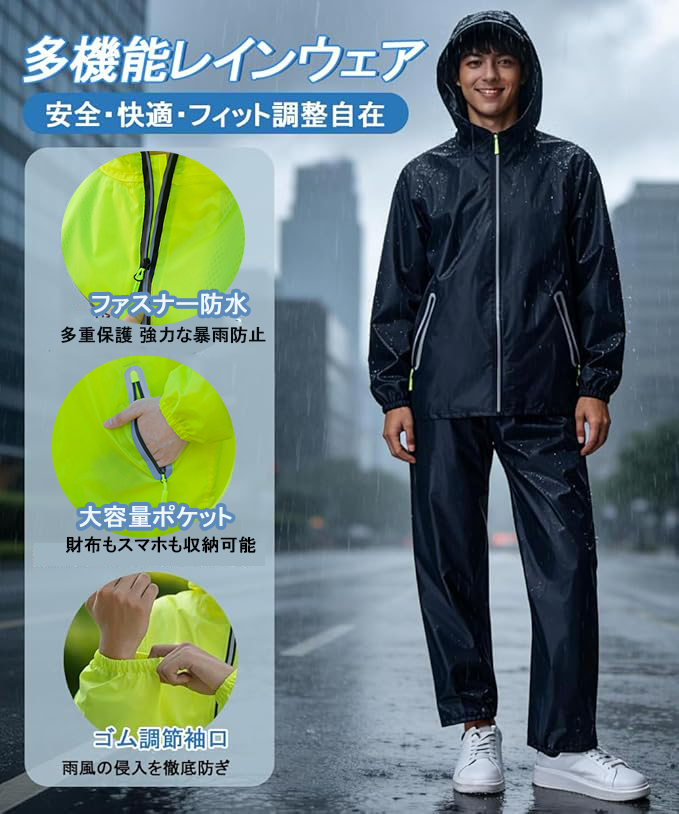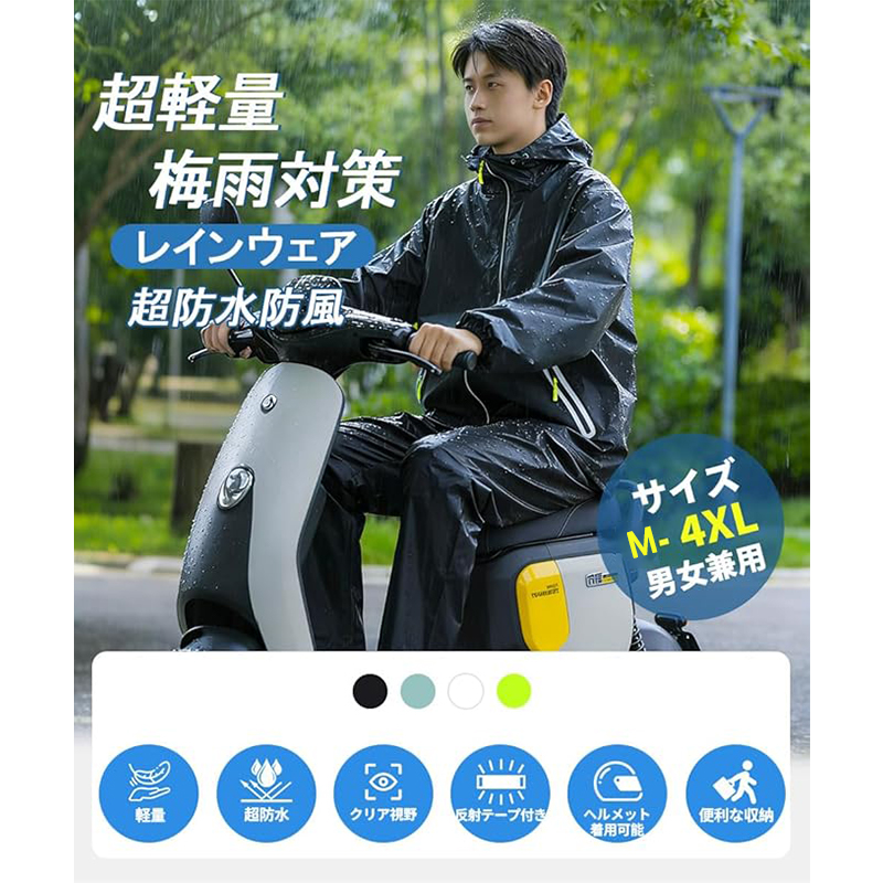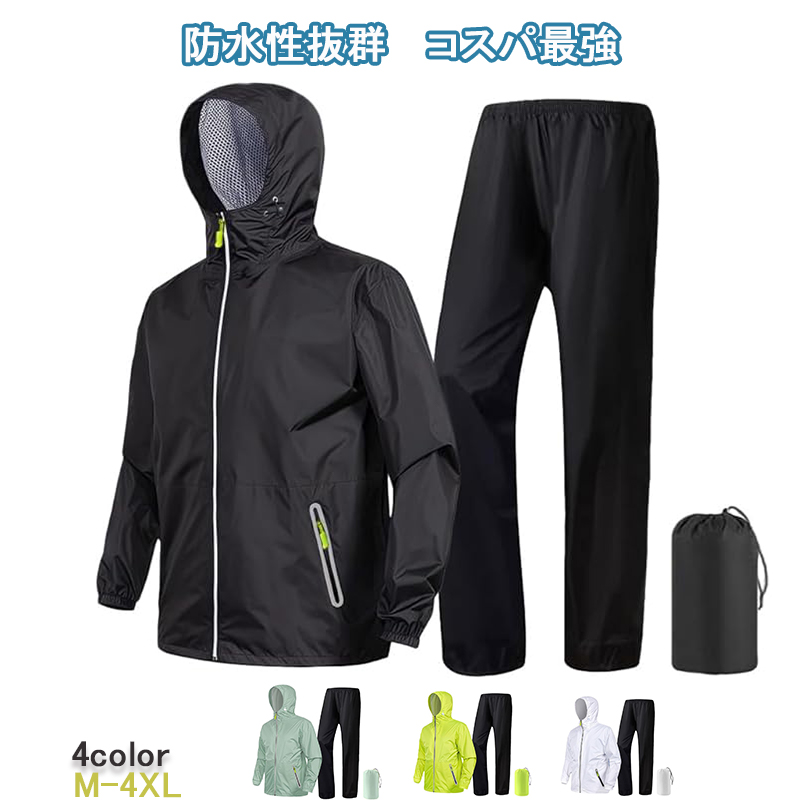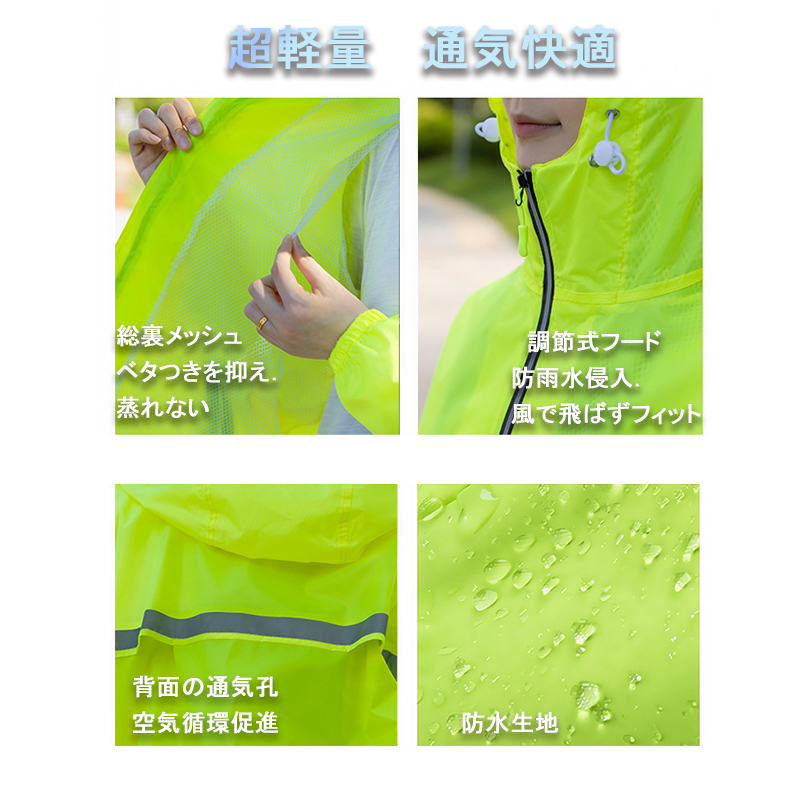 レインウェア 上下 セット メンズ 梅雨対策 超軽量 防水 透湿 通気メッシュ レディース 反射プリント 自転車 バイク 登山 レインスーツ通勤 通学