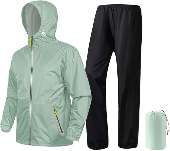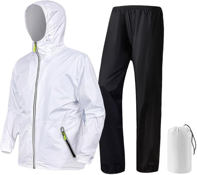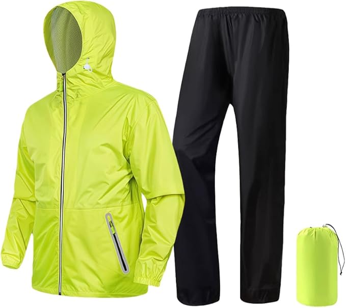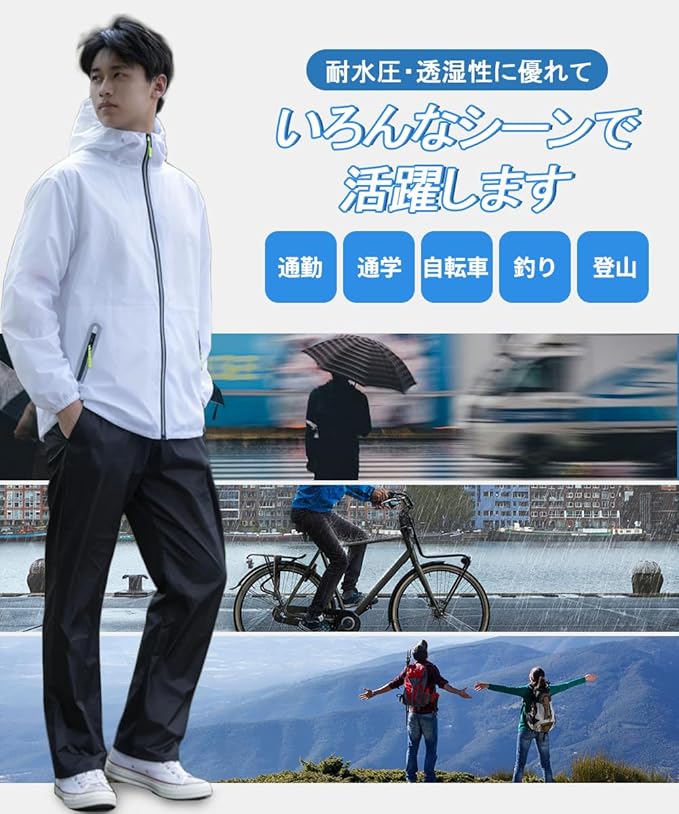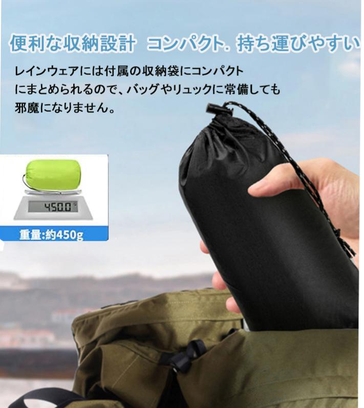 【超軽量素材】重さは500mlのペットボトルより軽いです。レインコート には高密度超軽量ポリエステル生地に防水コーティングを施し、さらに表面には撥水加工をプラス。縫い目には止水テープ加工を施し、防水性、透湿性も十分。超軽量設計で着用時の負担を最小化。高密度素材採用で摩擦耐性と防水性に優れ、長期使用でも性能持続。