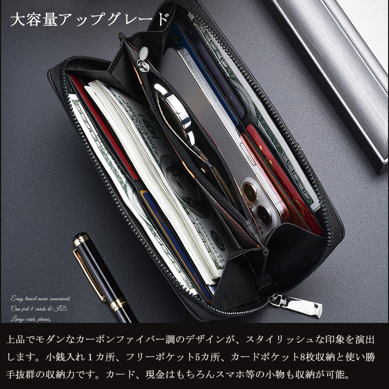 財布 メンズ 長財布 スキミング防止 カーボンレザー レディース 大容量 ラウンドファスナー コインケース ビジネス 30代 40代 50代 高級感