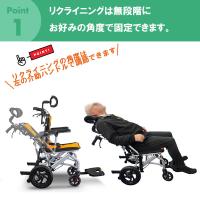 前屈式の大きな特長として、座面に板が入っているため、 しっかりと安心して座れるのが特徴です。 注:横開閉式の車椅子は布を左右に引っ張って座面とするため、 座り心地が不安定になりがちです。 背もたれ、座面にスポンジパットが入っているため、