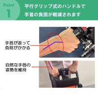 平行グリップ型ハンドルで長時間押しても介助者の手首に負担がかかりにくい構造です。