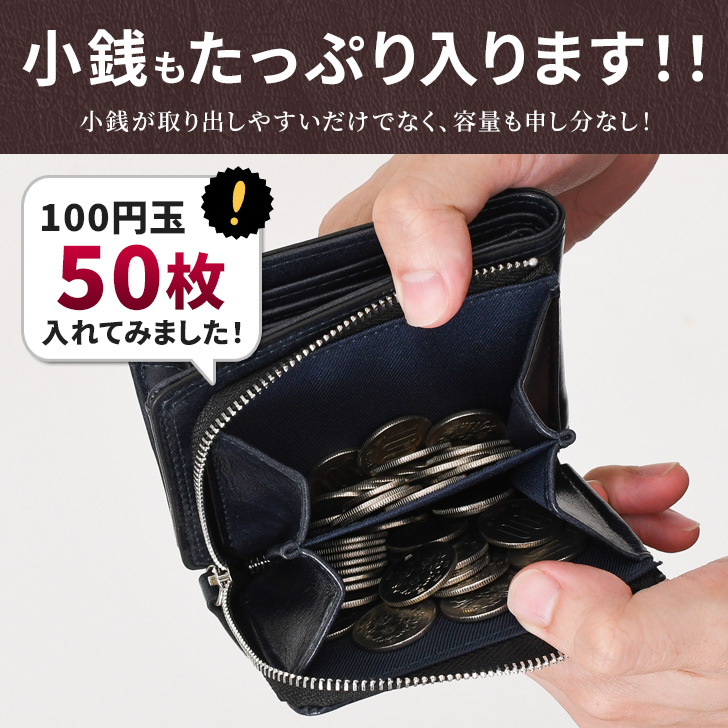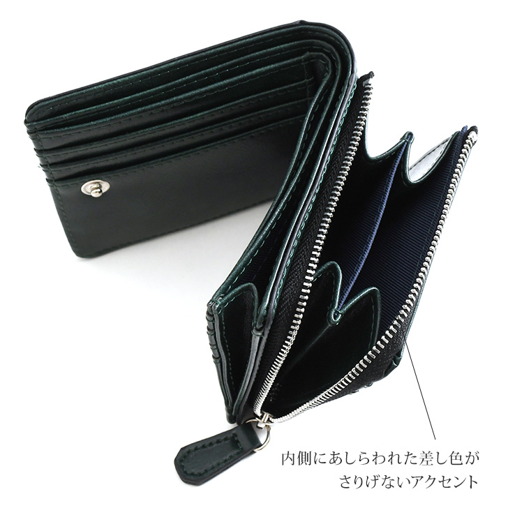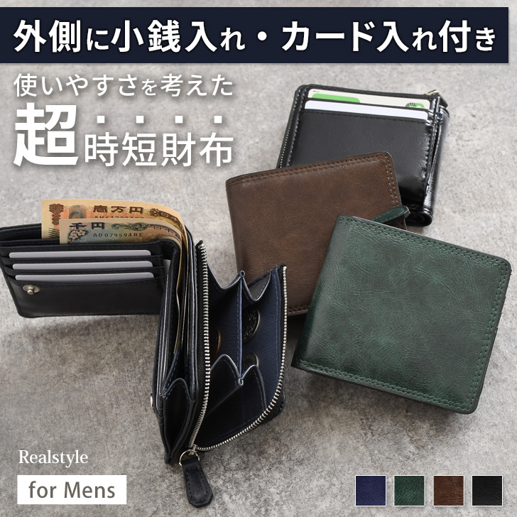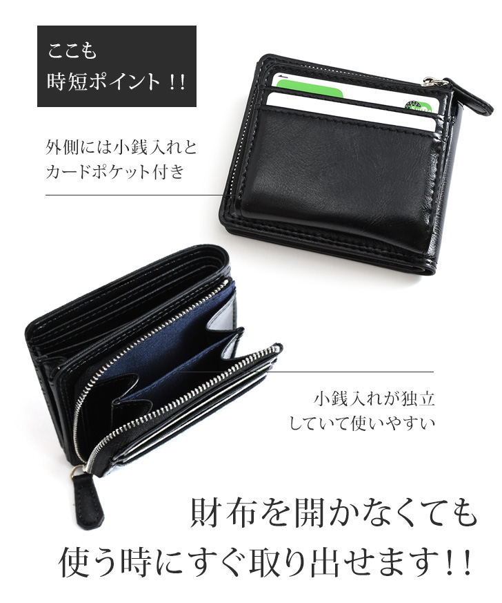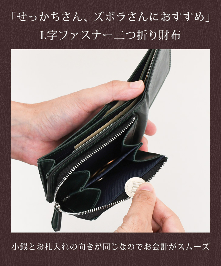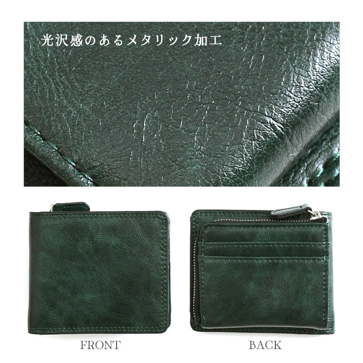 財布 メンズ 二つ折り L字ファスナー 小銭入れあり 外側 大容量 中仕切りあり 小さい お札2か所 使いやすい コンパクト 外付け カードケース 時短 メタリック