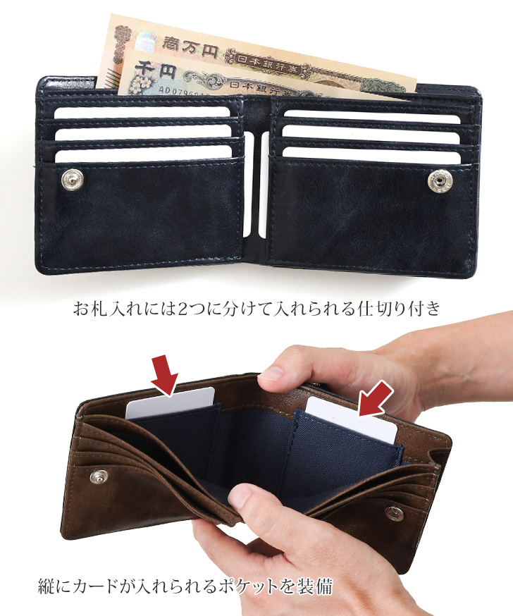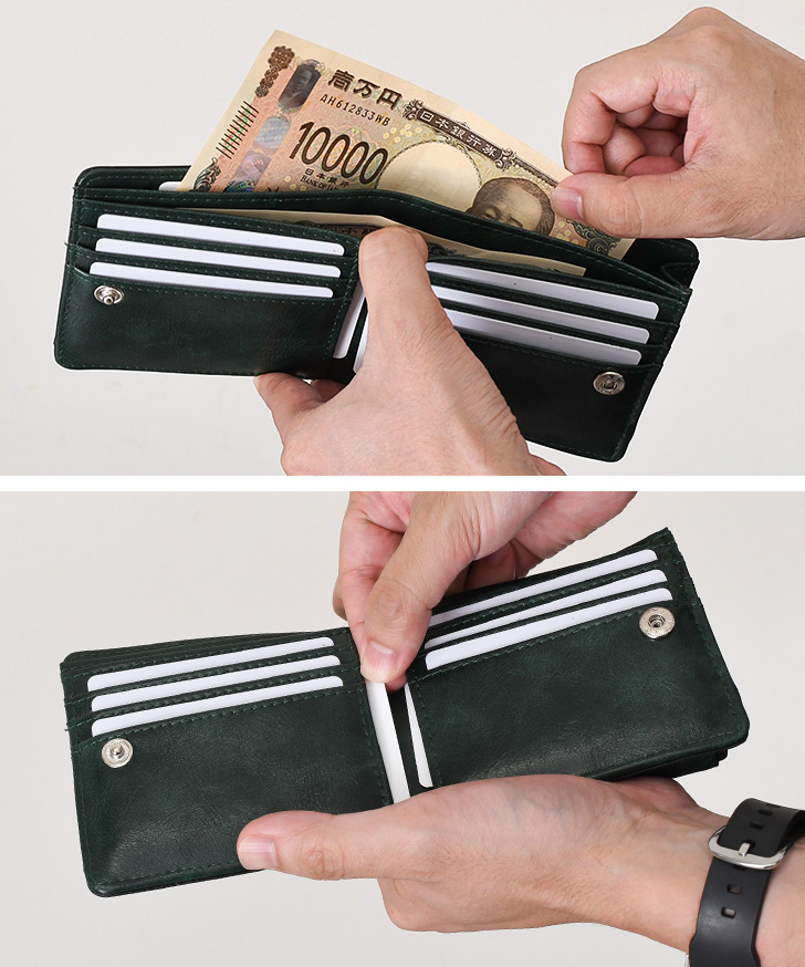 二つ折り財布 札 小銭 同じ向き ファスナー 札入れ カード入れ 仕切り ウォレット ミニ財布 短財布 男性 紳士 カードたくさん入る 多い せっかち 二つ折 横 向き コインケース 小さめ バイカラー シンプル お札を折らない お札が折れない レジでもたもたしない ボタン留め 実用的 カードポケット 2つ折り さいふ ミニウォレット サブ かぶせ サイフ フェイクレザー エコレザー 合皮 合成皮革 柔らか 一粒万倍日 大安 天赦日 開運日 金運 ラッキーカラー
