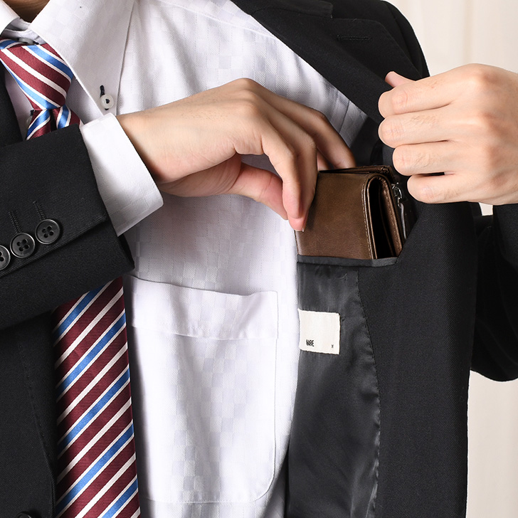 外側には小銭入れとカードポケット付きで
