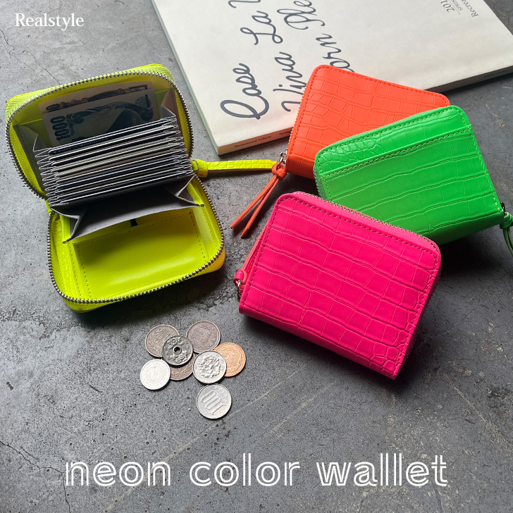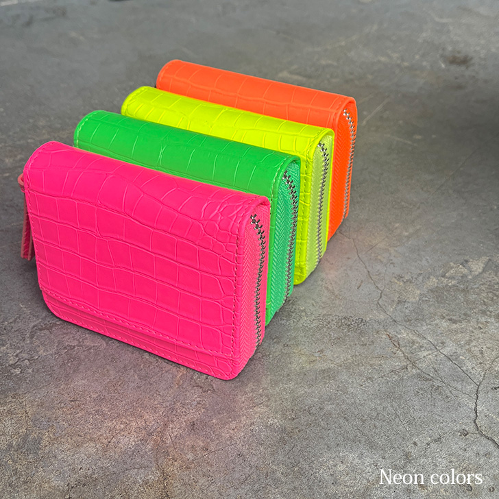 ネオンカラー クロコ型押し ジャバラ 蛇腹 2つ折り ファスナー チャック カード入れ カードウォレット サイフ さいふ お札 通す 蛇腹 お札が折れない お札に折り目がつかない 軽量 軽い 通勤 通学 きれいめ プレゼント フェイクレザー 無地 派手 個性的 大人 学生 整理 収納 開運日 金運 厄除け 一粒万倍日 寅の日 天赦日 高級感 高見え せっかち