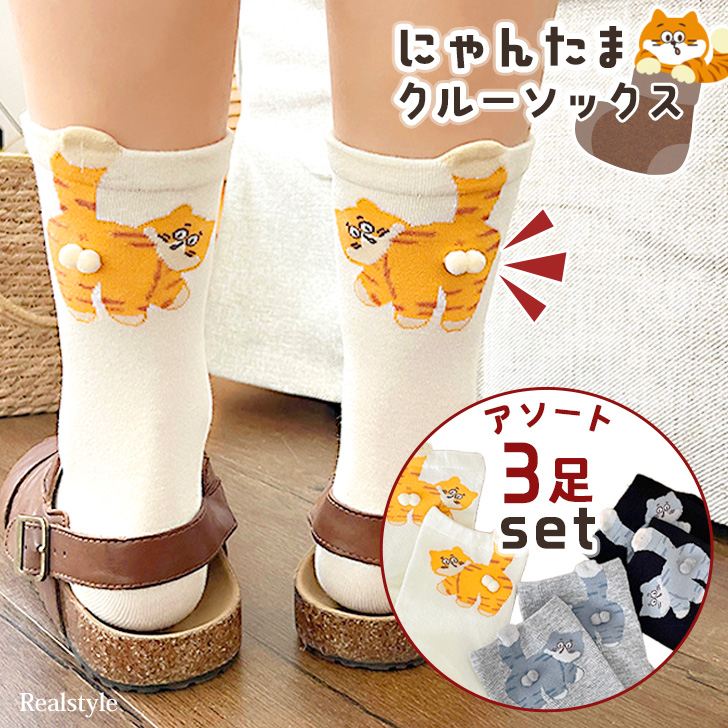 3カラーアソート 3足セット 猫モチーフにゃんたまクルーソックス レディース 靴下 くつ下 ソックス クルーソックス 猫 ネコ ねこ にゃんたま コットン混 綿混 おしゃれ かわいい 可愛い おもしろ お揃い ニャンタマ 猫たま ポンポン 動物 アニマル くつした セット ショート フリーサイズ デイリー 春夏 秋冬 大人 友達 ペア ルームソックス おうち時間 リラックス キャット cat にゃんこ 愛猫 茶トラ ハチワレ はちわれ サバトラ 日本猫 マンチカン ミヌエット ラグドール メインクーン サイベリアン ニャン玉 肉球 足跡 猫グッズ ふぐり おしり オス オスネコ ボンボン ポンポン付き モチーフ チャーム 立体 3D ユニーク 個性的 人気 SNS インスタ 映え アイボリー ホワイト 白 オフホワイト ベージュ ナチュラル クリーム ブラウン 茶色 ブラック 黒 グレー 灰色 杢感 レッグウェア クルー丈 ふくらはぎ 猫の日 2026 ねこの日 ネコの日