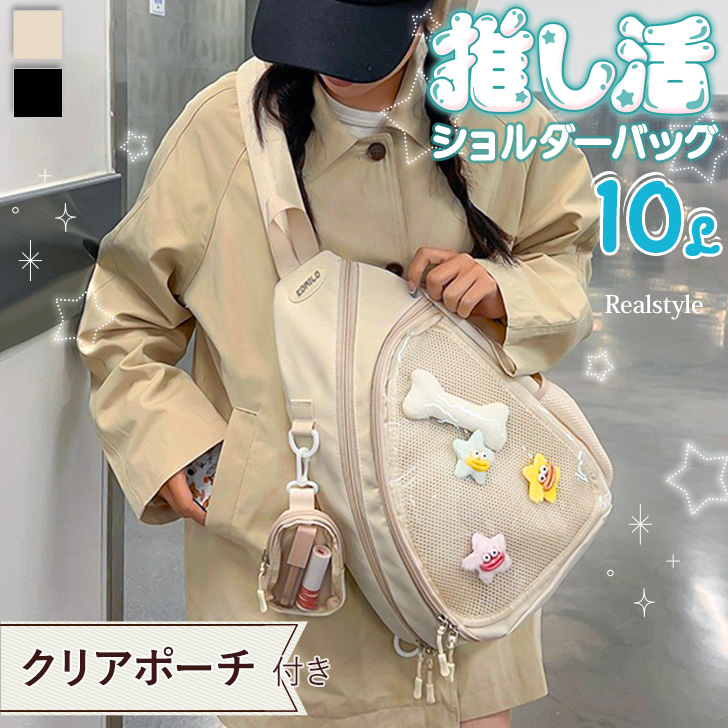痛バッグ 痛バ ボディバッグ ショルダーバッグ メッシュボード付き 缶バッジ クリアバッグ 推し活 レディース メンズ 軽い 斜めがけ グッズ