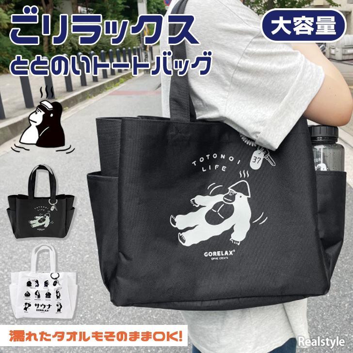 トートバッグ ごリラックス サウナ ととのい 大容量 a4 大きめ レディース メンズ マチあり おしゃれ 銭湯 温泉 ゴリラ アウトドア サ活グッズ 白 黒 GORELAX