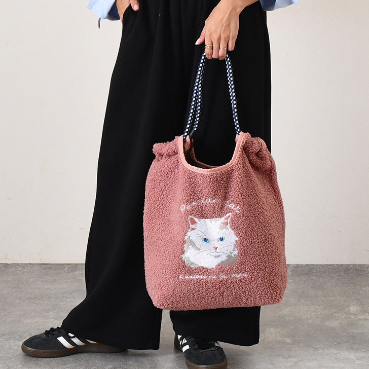コードトート 623-853 イープ ブランド 刺しゅう 軽量 バック 巾着バッグ 目隠し ファーバッグ 持ち手がコード 軽量 トート バッグ パラコード ロープ 持ち手 マチ付き 柔らか おしゃれ ハンドバッグ ボアバッグ 起毛 もこもこ 秋冬 マチあり 肩がけ 斜めがけ 可愛い 上品 通勤 通学 旅行 ねこ いぬ ネコ イヌ キャット ドッグ ペルシャ猫 長毛猫 マンチキン 短足猫 ショートヘア ヘアー トイプー ミニチュア シュナ 推し活 サブバッグ ライブ コンサート 現場 参戦 遠征 ジャンボうちわ 団扇 ピンク ホワイト グレー チャコール ホワイト アイボリー ブラック ブラウン ベージュ グリーン 灰色 白 黒 茶色 緑 猫の日 ねこの日 ネコの日