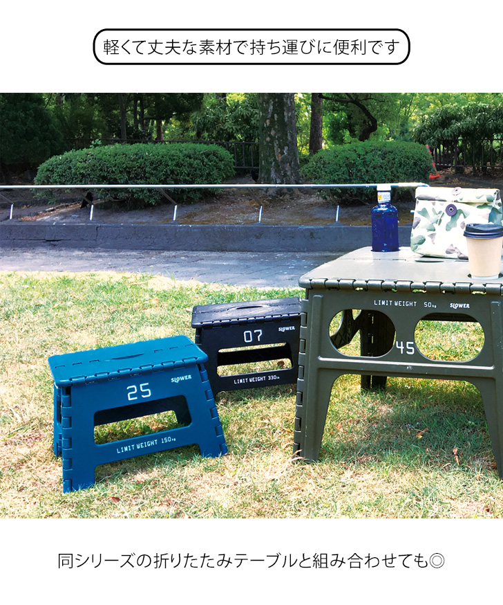 SLOWER スロウワー フォールディング ステップ タバック 耐荷重125kg 踏み台 折り畳み踏み台 ステップスツール 脚立 椅子 いす イス 持ち運び コンパクト 運動会 キャンプ レジャー アウトドア ブランド