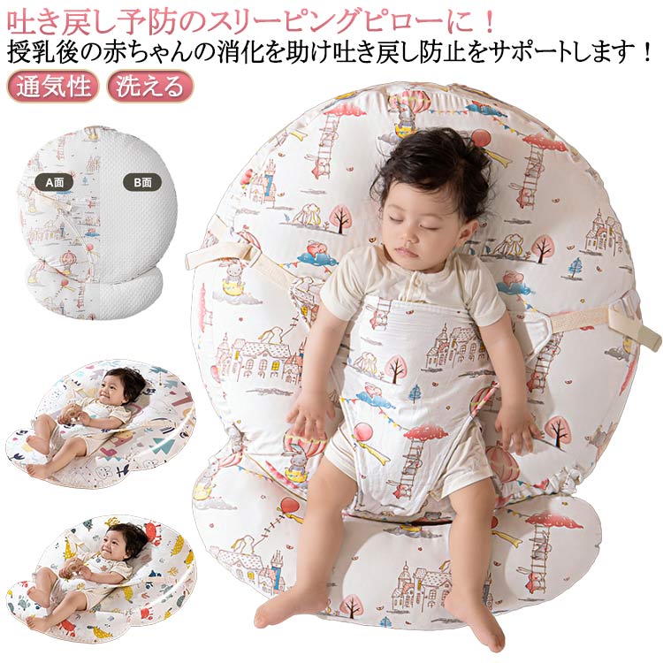 | 吐き戻し予防のスリーピングピローに!授乳後の赤ちゃんの消化を助け吐き戻し防止をサポートします! 赤ちゃんの背中が自然と丸くなる緩やかな傾斜で、頭の部分が高く足元は低め、腰の部分は沈むようになっています。授乳後の赤ちゃんの消化を助け吐き戻し防止をサポートします。 15度の傾斜がついており、赤ちゃんの腰の辺りからゆったりと頭を持ち上げて、吐き戻しや鼻づまりを和らげます。 寝ている赤ちゃんを置くと起きてしまう背中スイッチの対策にもなります。 通気性・吸汗性に優れたコットン素材のカバーを使用しており、取り外して洗えるためいつでも清潔に使えます。 吐き戻し防止ベビークッションとして以外にも、授乳クッションや抱っこ時のサポークッション、お昼寝クッションなどいろいろなシーンで活躍! 新生児〜幼児まで長く愛用できます。 | |