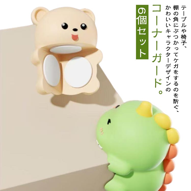 | テーブルや椅子、棚の角にぶつかってケガをするのを防ぐ、かわいいキャラクターデザインのコーナーガード。 特に小さなお子様や高齢者の方にとって危険な角をガードしてくれるので、衝撃対策やケガ防止に役立ちます。 万が一ぶつかっても、弾力のあるシリコンが衝撃を吸収してくれるので、痛さを軽減してくれます。 三面の両面テープで角をピタッとカバー。 貼り付けるだけで簡単に取り付けられます。 6個セットなのでテーブル四隅上下はもちろん、色んな場所で活躍してくれます。 かわいいゆるかわデザインでインテリアの一部としても◎特に子供部屋と相性抜群です。 | |