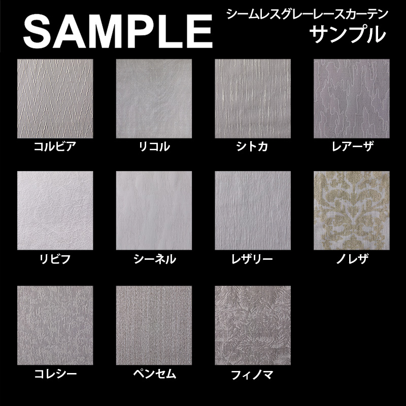 ・こちらは「シームレスグレーレースカーテン」のサンプル請求のページです。