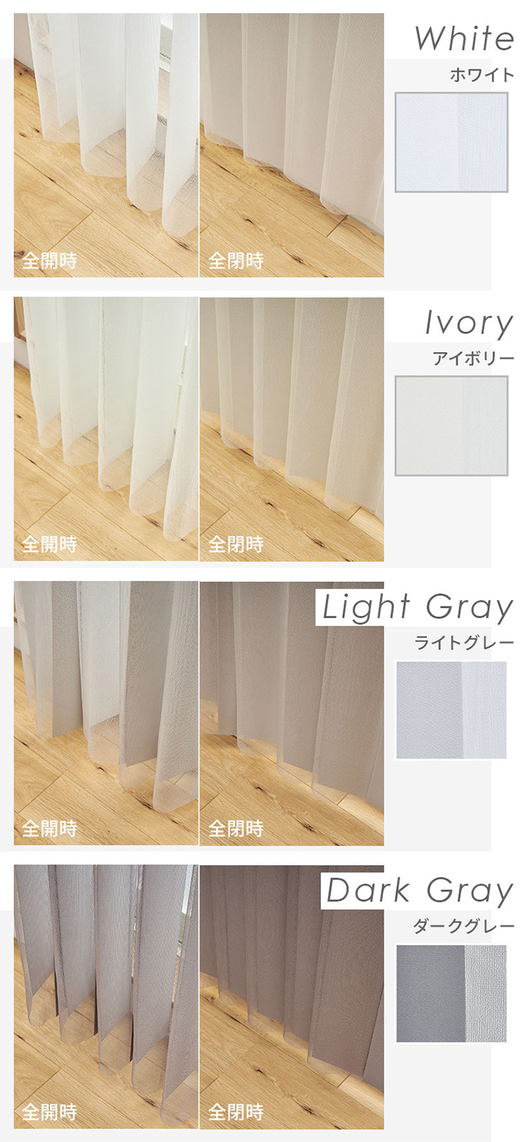 全開時は透け感が強いレース生地部分が開き、外からの光を採りこみます。