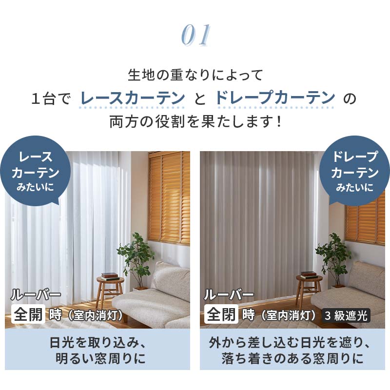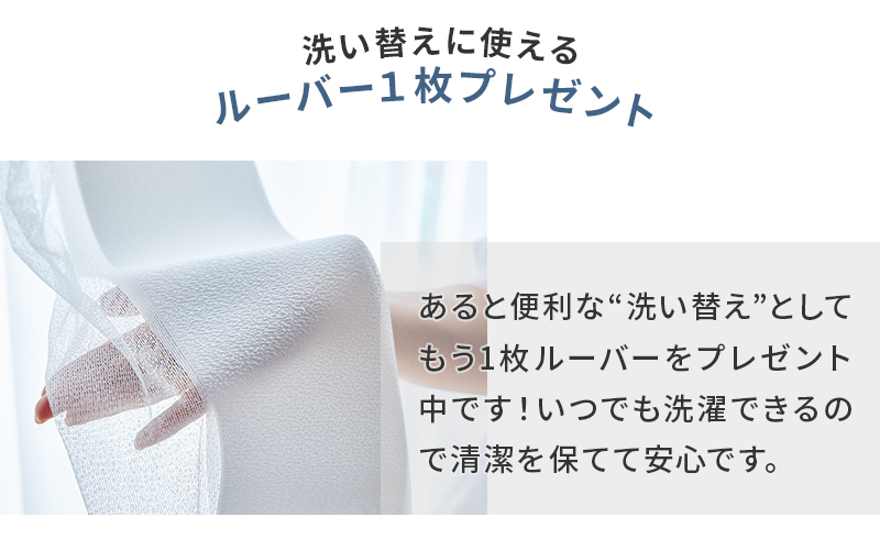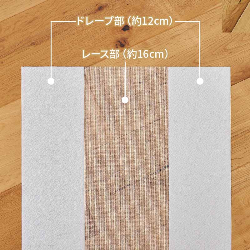 ドレープ・レース生地が一体となったルーバー。ドレープ生地部分はそれぞれ約12cm、レース生地部分は、約16cmの幅があります。
