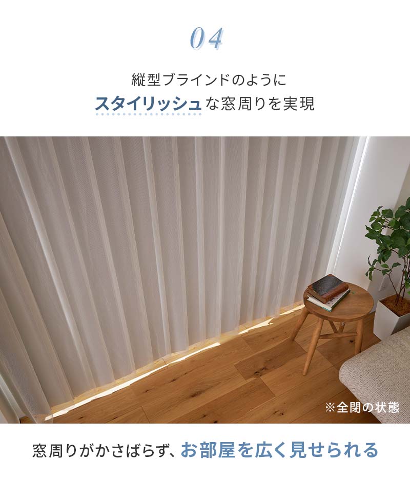 全閉時は、ヒダがなくなり、縦のラインが強調されるため、さらに空間を広く見せられます。