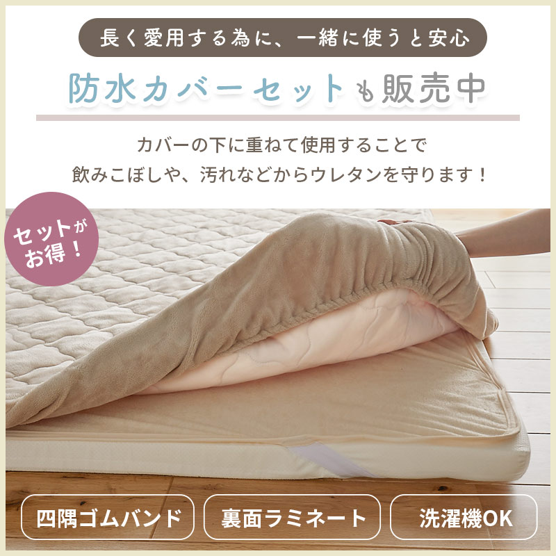 | 素材 | カバー表地:ポリエステル100%(中綿:ポリエステル綿100%) 防水シーツ:ポリエステル100% ウレタン中材:25D高反発ウレタン |