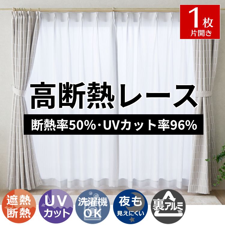 断熱レースカーテン 1枚 遮熱 断熱 UVカット 北欧 おしゃれ 洗濯 洗える オーダー カーテン レースカーテン / サーモガード レース 片開き