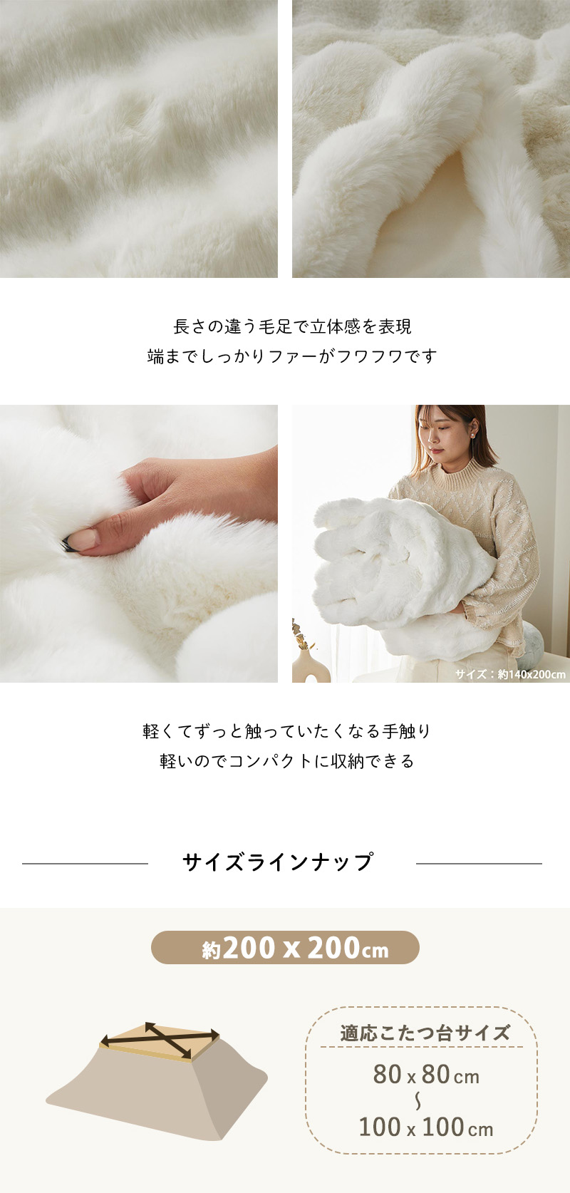 在庫処分 特価 こたつ布団 正方形 200×200cm 布団 オシャレ フェイクファー ラビットファー ふわふわ かわいい おしゃれ 北欧 / ポコポコラビットファー