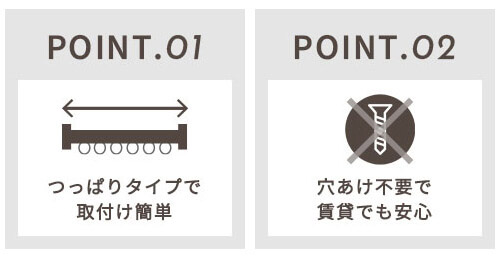 POINT.02穴あけ不要で賃貸でも安心