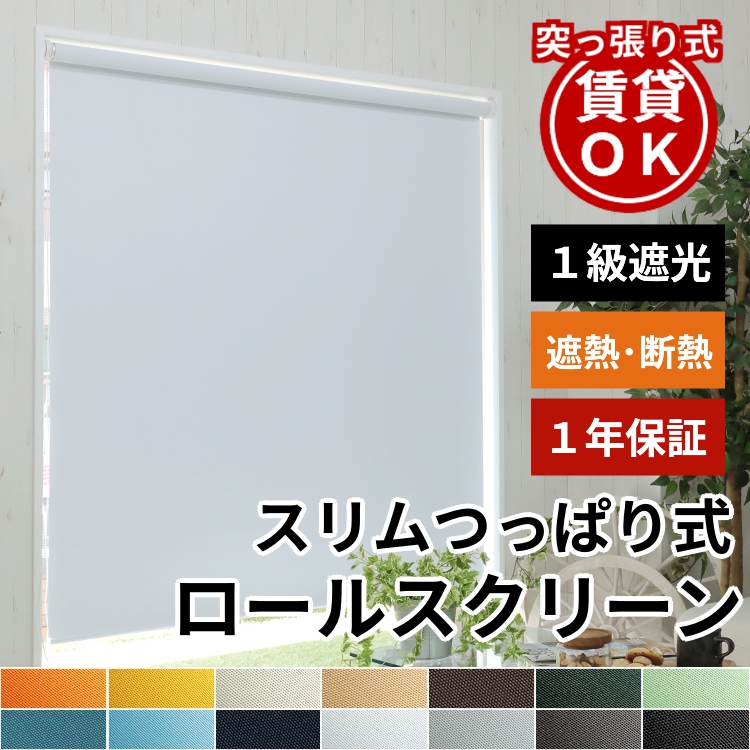 ロールスクリーン ロールカーテン 突っ張り式 遮光 つっぱり 安い オーダー 調光 スクリーンカーテン / ロールスクリーン 一級遮光 スリムつっぱり式